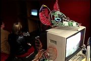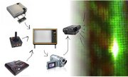 In the Jackal GamePod, classic videogame consoles were wired together to produce luminous video abstractions. The GamePod apparatus begins with high-paced, aggressive live game imagery, and extracts, layers, magnifies, and saturates minute details of the image, transforming it into something lush and contemplative.