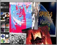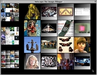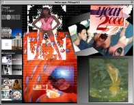 The second generation pillager gives the viewer greater flexibility to arrange, stretch, and manipulate images from the streams in translucent layers. This one pillages 5 search engine databases simultaneously - Lycos, AltaVista, Corbis, Google, and Yahoo. Download to your desktop, then run it and drag images from the small grids to create layered collages.
