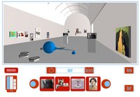 The interactive Virtual Curator and Virtual Artist systems were created by Ben Chang and graphic designer Kim Collmer, in collaboration with curator Joshua Decter. Within a three-month timeline, we developed an image-manipulation program for the Virtual Artist and a fully-navigable 3D environment with interactive image database for the Virtual Curator. These systems were required to function in both a gallery installation and a web context. We leveraged a wide range of technologies - VRML for the 3D environment, Java for the image database and the Virtual Artist, and Flash for animated information screens about each work in the exhibition.